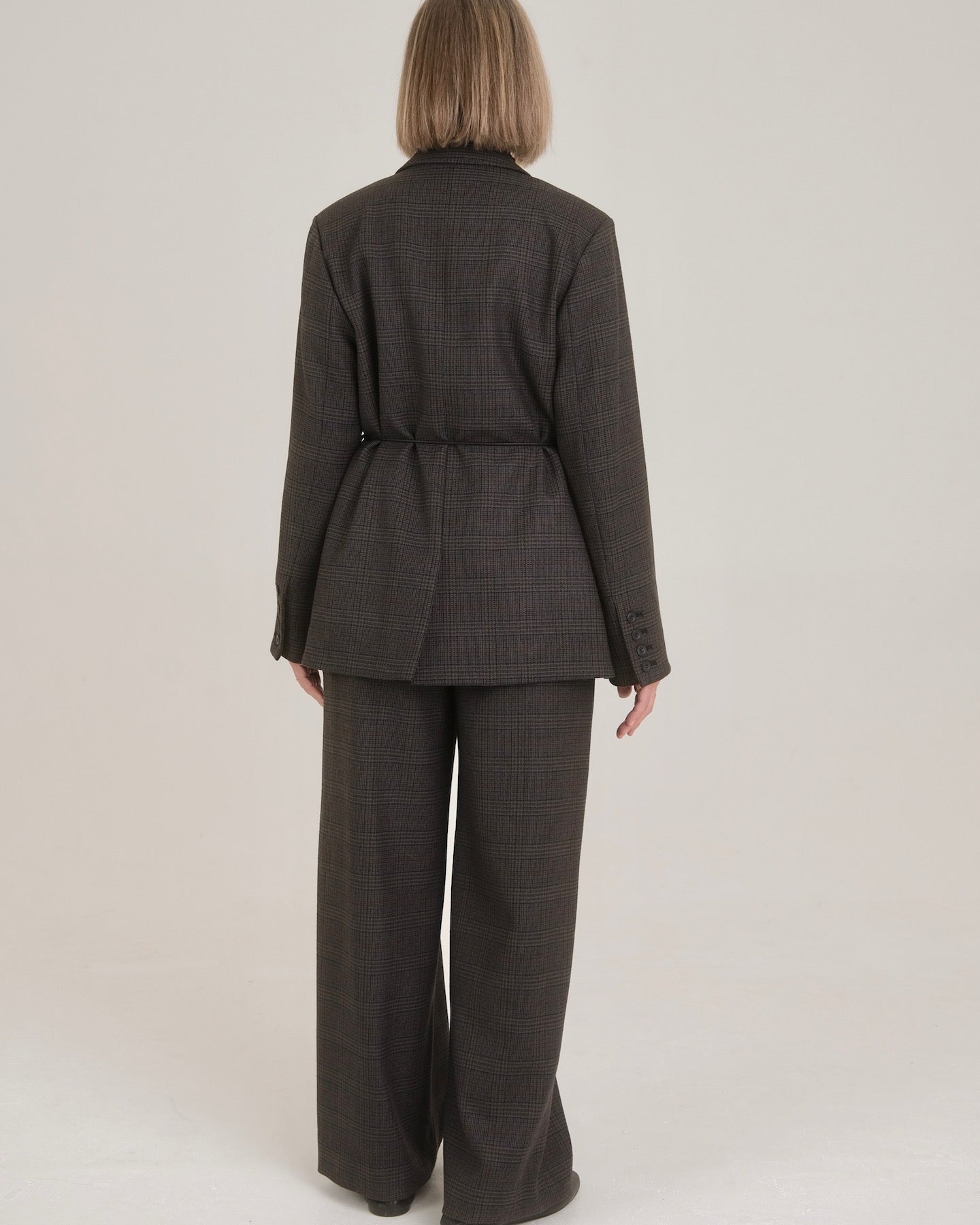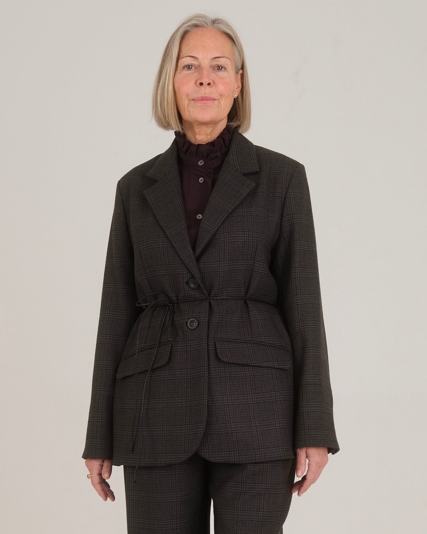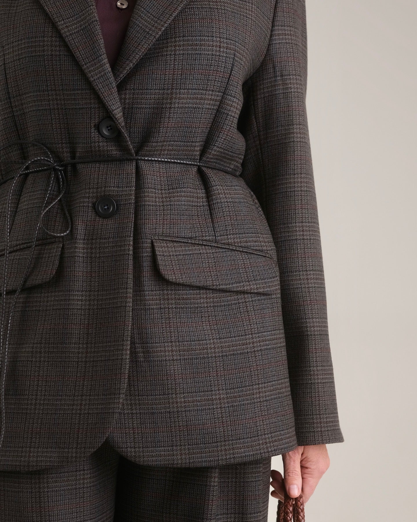 A refined take on everyday tailoring, the modern blazer features a softly structured, silhouette to be worn with or without the twisted cord belt. Tailored in a pure wool anthracite prince of wales check, it offers an elevated feel with a relaxed fit that moves effortlessly through the seasons.