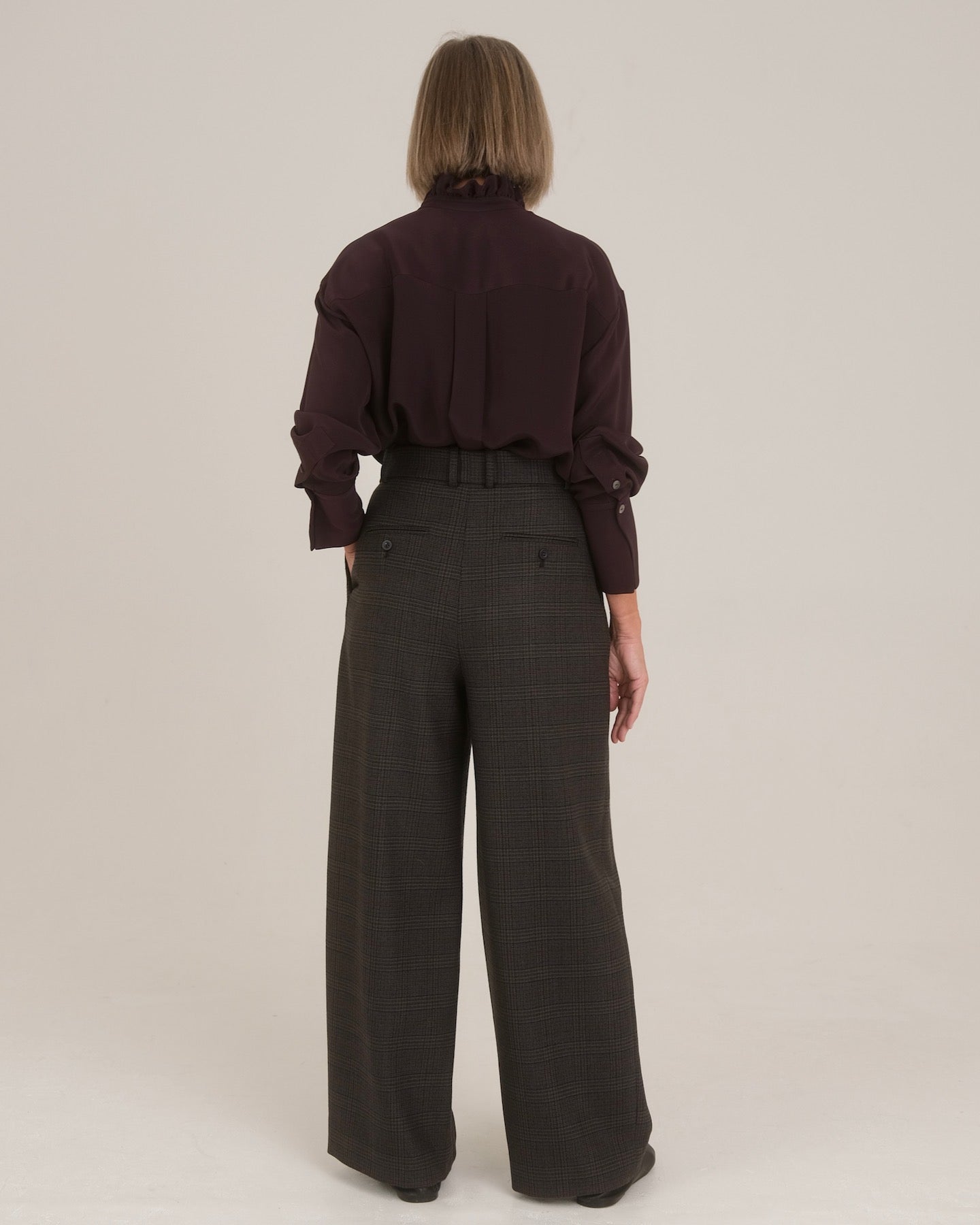 A new silhouette for Resort, the Victoria Ruffle Neck blouse blends relaxed tailoring with refined details. Cut with ease, it features a wide front placket with mother of pearl buttons, deep french cuffs and a soft ruffle at the neck, designed for versatile styling.