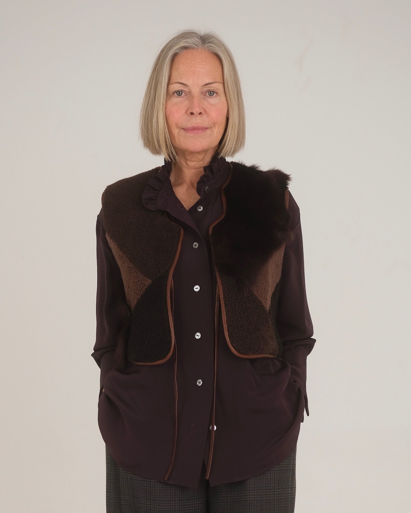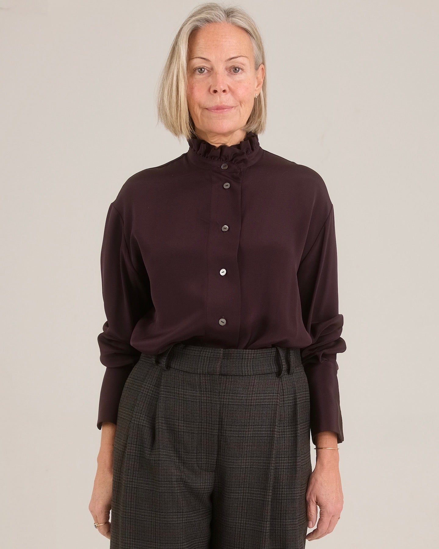 This edition is crafted from Bordeaux silk crepe, a timeless neutral that pairs effortlessly with your existing wardrobe. Style it with our lace skirt, or over denim, layer under knits, or your favourite blazer - an easy, elevated piece for day or night.